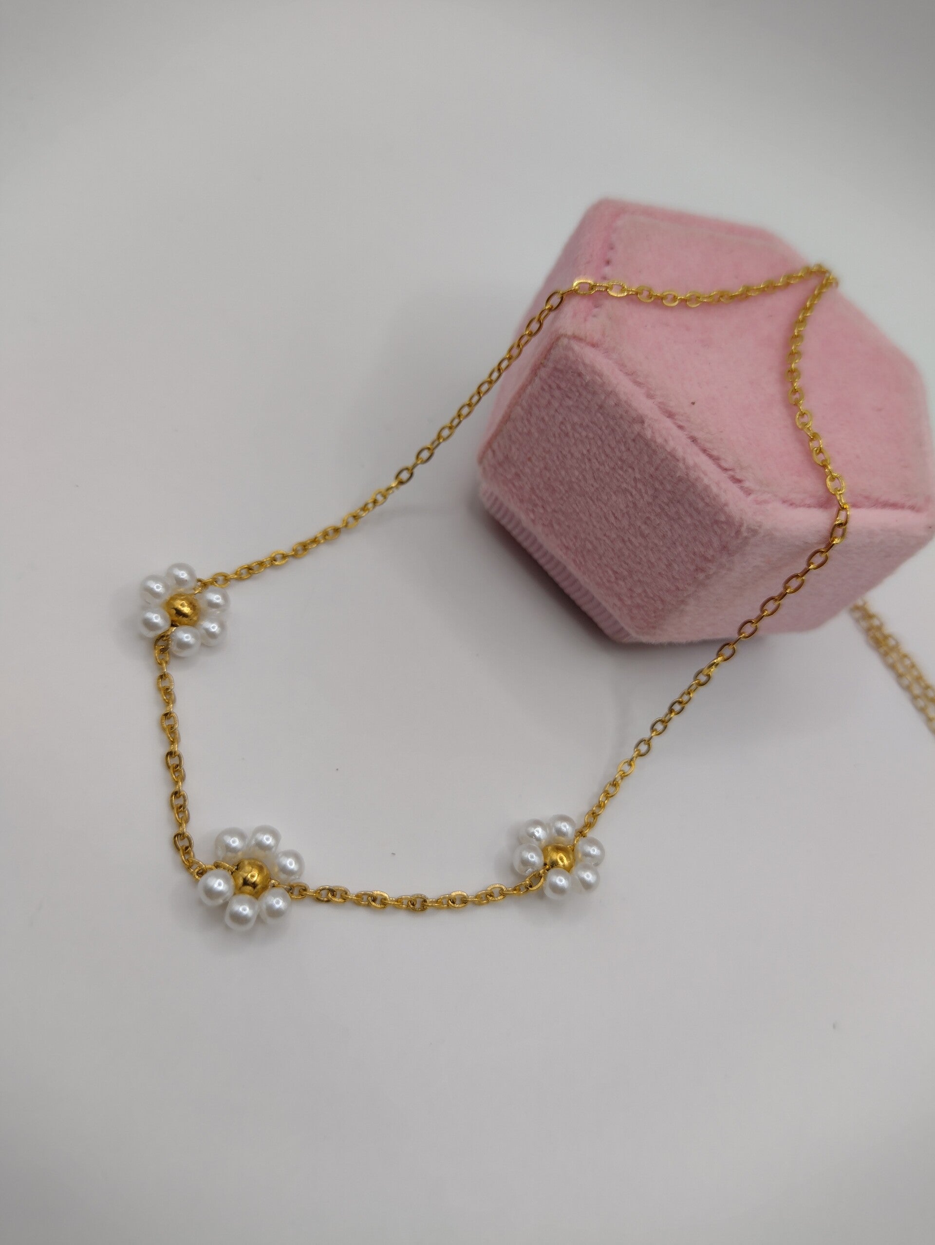 Ketting bloemen wit/goud